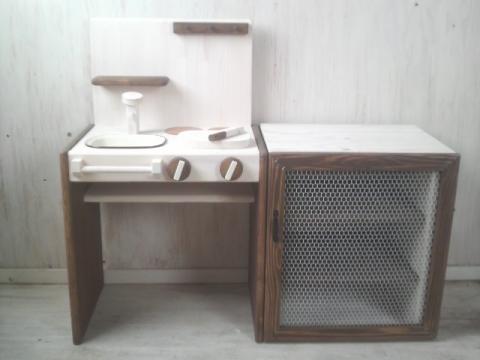 【おままごとキッチンの製作例】千葉県 I様 ままごとデスク&キャビネット絵本立て仕様