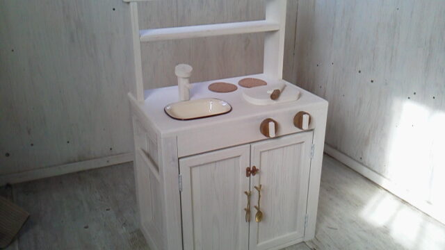 【おままごとキッチンの製作例】宮城県 H様 おままごとキッチンカップボードタイプ