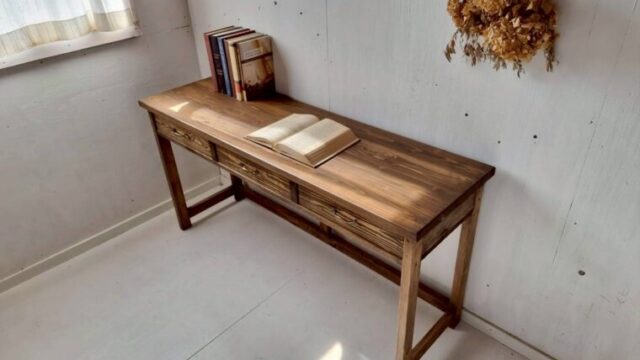 【デスクの製作例】三重県 N様 3杯引き出しワイドデスク