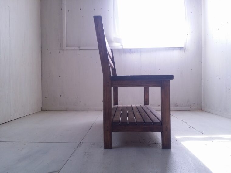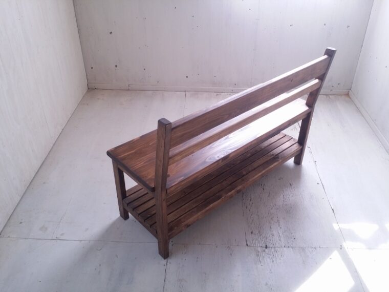 [商品名]:無垢ヒノキで造る 背もたれ付 ベンチチェア [0012]