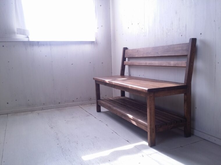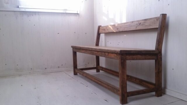 [商品名]:無垢ヒノキで造る 背もたれ付 ベンチチェア [0012]