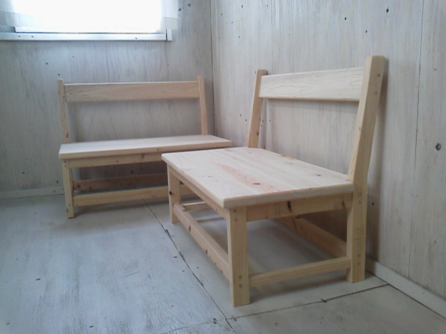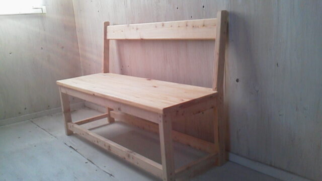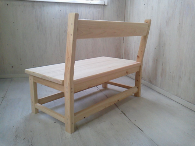 [商品名]:無垢ヒノキで造る 背もたれ付 ベンチチェア  [0012]