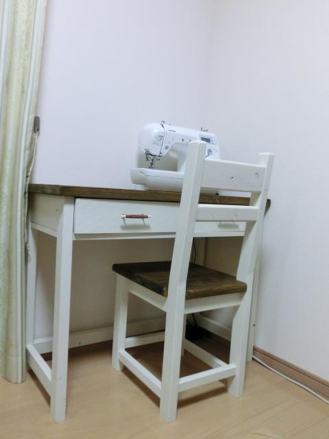 デスクもちょうど良いサイズで、リビングの隅っこに置いています。