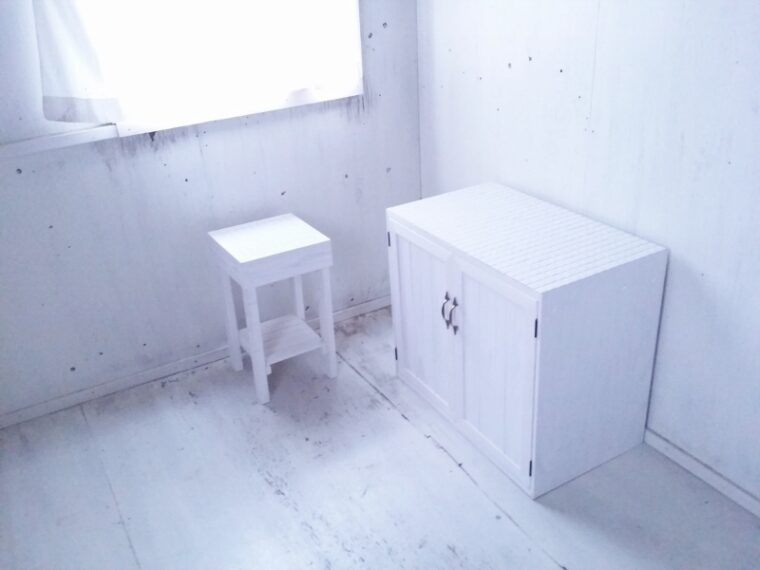 【キャビネットとテーブルの製作例】埼玉県 K様 タイルトップ観音キャビネット&タイルトップサイドテーブル