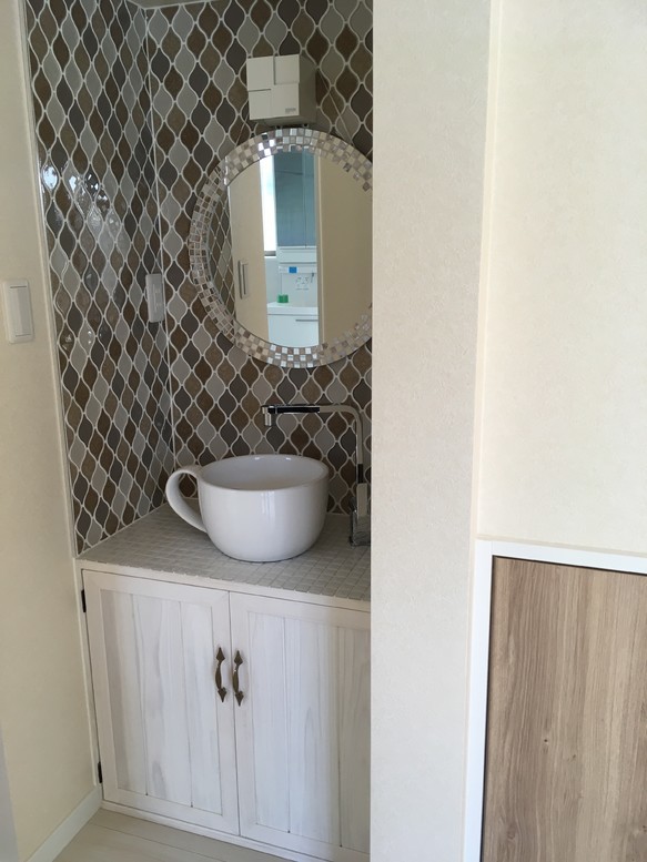 周りの壁やカップ型の受けや・・・ひとつひとつ選ばれて素敵な空間になったんですね