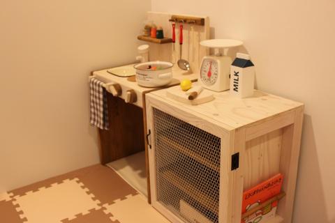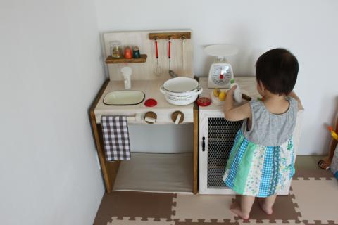 おままごとキッチンも、キャビネットもT様のアレンジが加わって