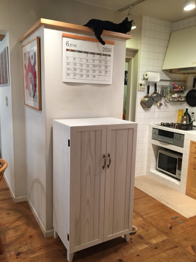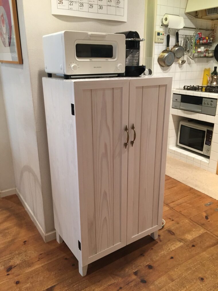 サイズ、扉、天板、棚の位置、取っ手、底部の脚と、ほぼほぼフルオーダーにご対応いただきまして、