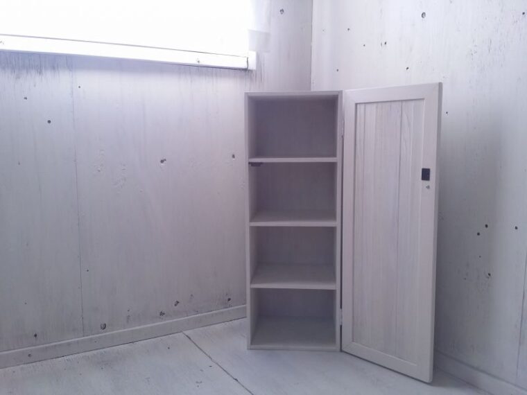 段やサイズ、木の扉への変更と、お色は全面ミルキーホワイトでご指定頂きました。