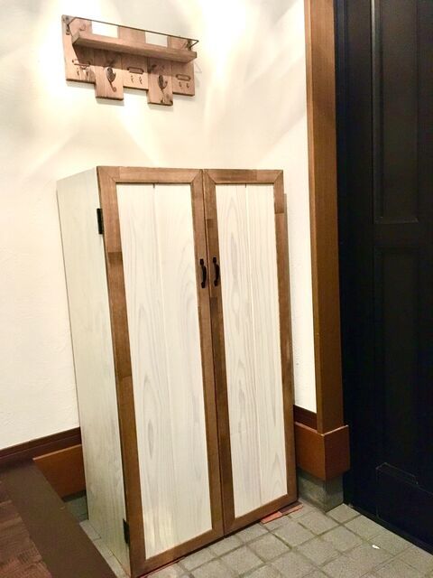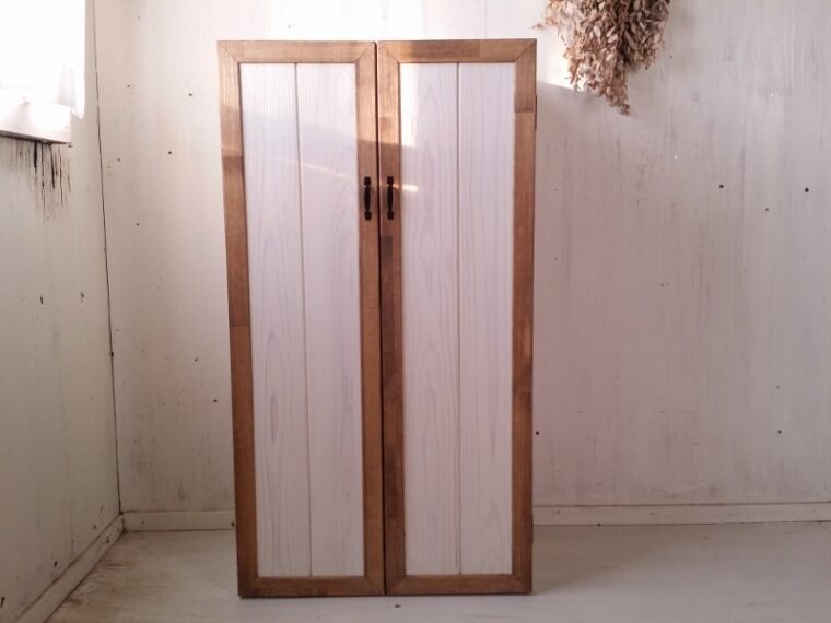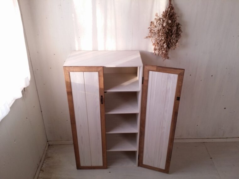 T様より扉がバイカラーになった収納棚をオーダーいただきました。