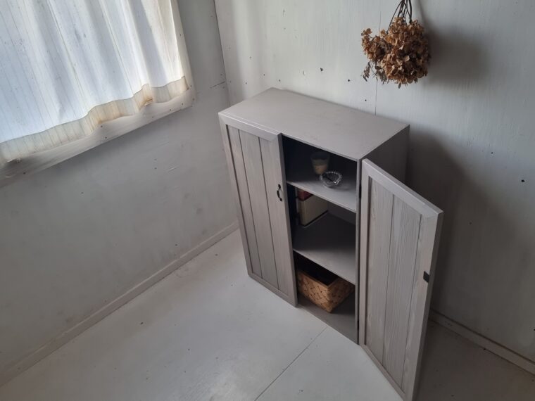 大阪府K様よりオシャレなライトグレーのキャビネットをオーダーいただきました。