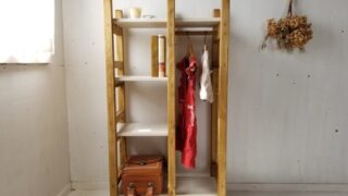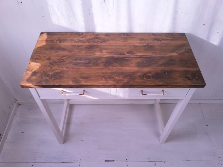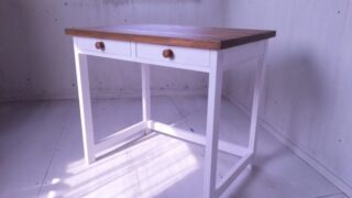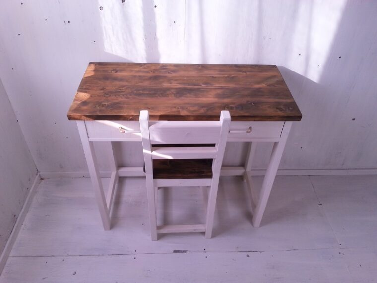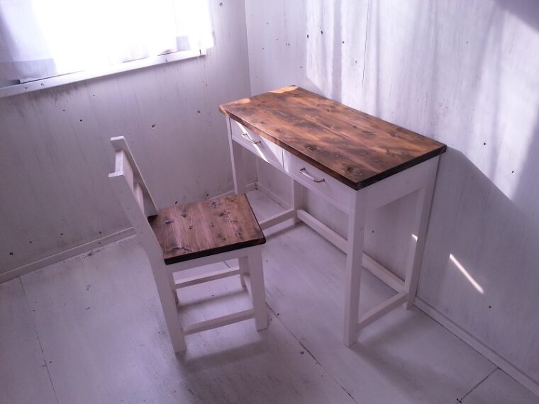 ハンドメイド家具うららの定番ともいえる白×茶のナチュラルなデスクセットを