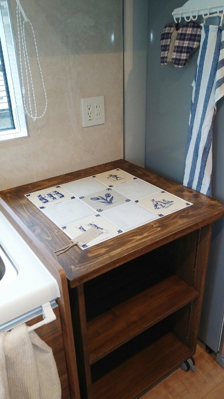 商品名 ナチュラルテイスト タイルトップ 移動式キッチンワゴン キャスター付[0005] 特別仕様