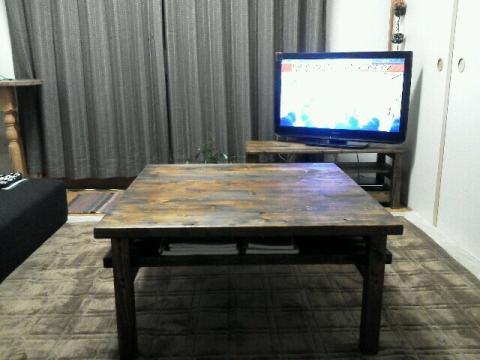 テレビボードは見本と同じ、ローテーブルは80cm角の正方形で、