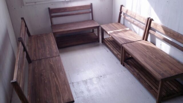 【ベンチの製作例】神奈川県 H様 背もたれ付ベンチ 棚付オーダー×5