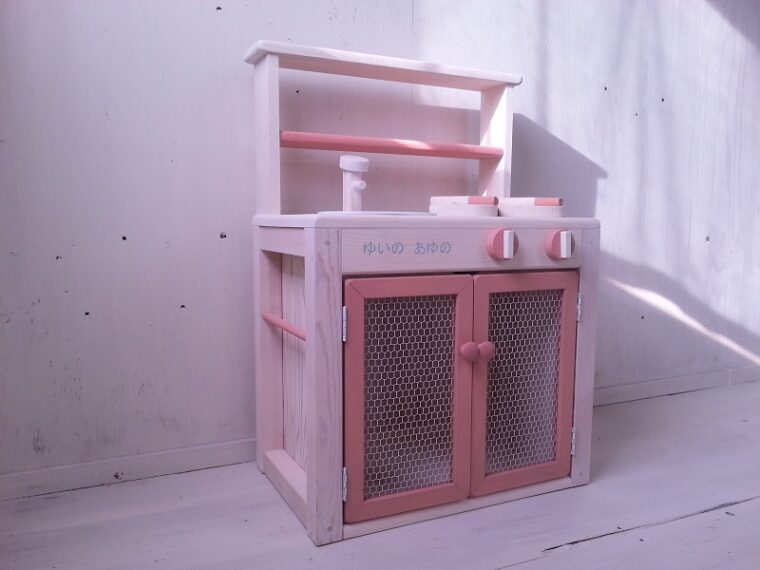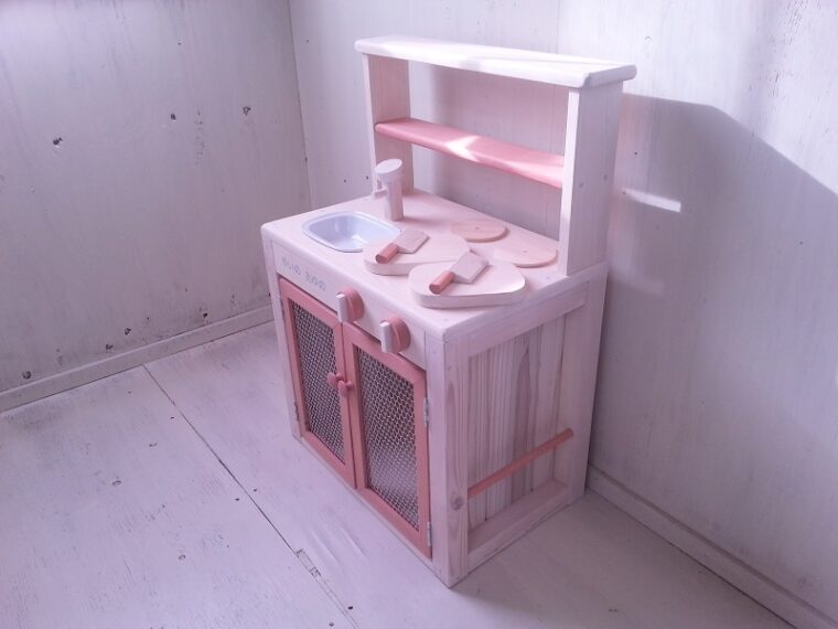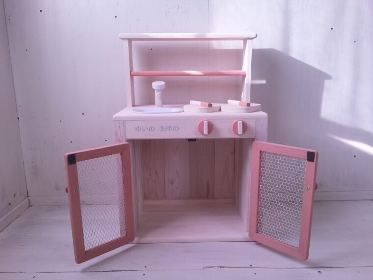【おままごとキッチンの製作例】香川県 M様 おままごとキッチン カップボード オープンタイプ