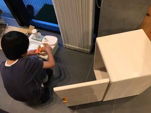 今は息子が片付けていますが、あとで下の娘が帰ってきて遊ぶ予定です。