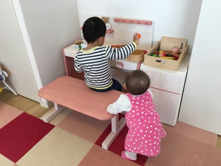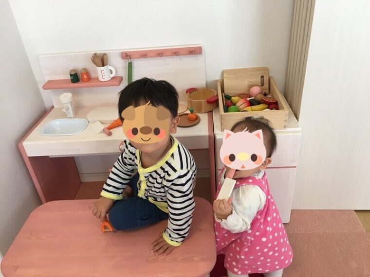 ゆくゆくは、お子様二人で遊べるように、サイズアップされたキッチン。