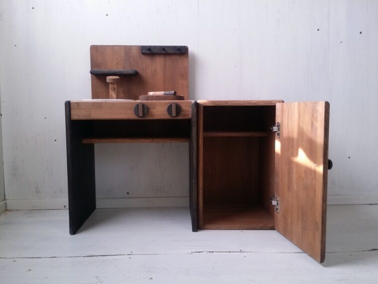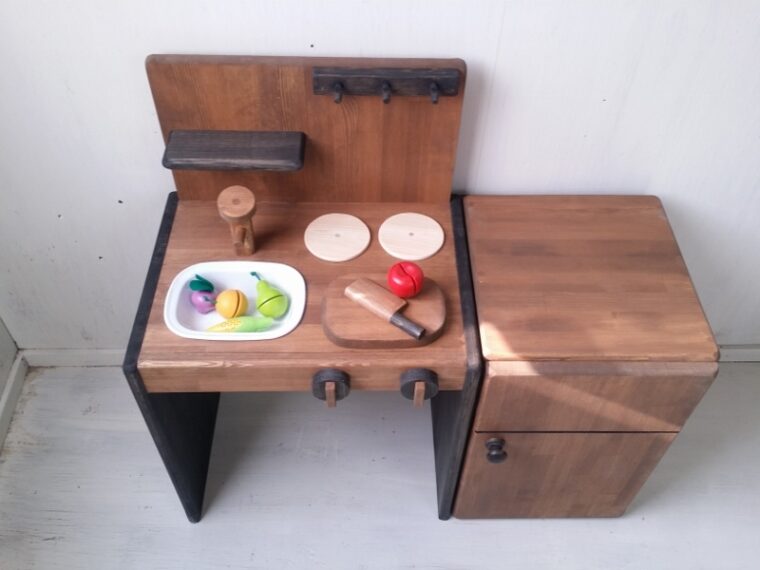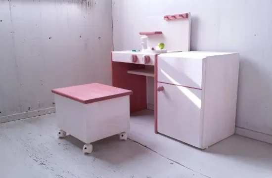 【おままごとキッチンの製作例】千葉県 T様 おままごとキッチンデスクタイプ・冷蔵庫とのセット