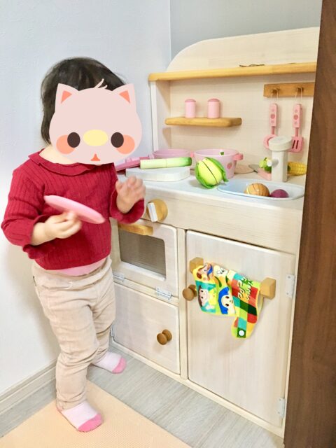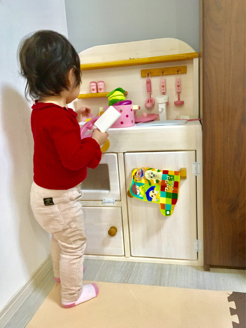おままごとキッチンでお店屋さんごっこなどをして、まだ遊んでいます。