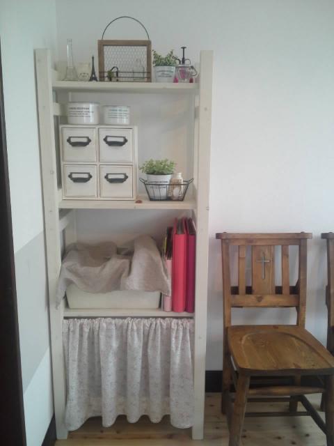 ラックの横に並んでいるお手持ちのチャーチチェアともなじんでいて
