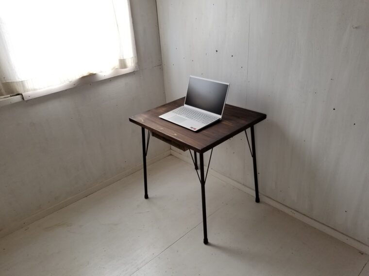 【テーブルの製作例】大阪府 A様 アイアン脚テーブル引き出し付き